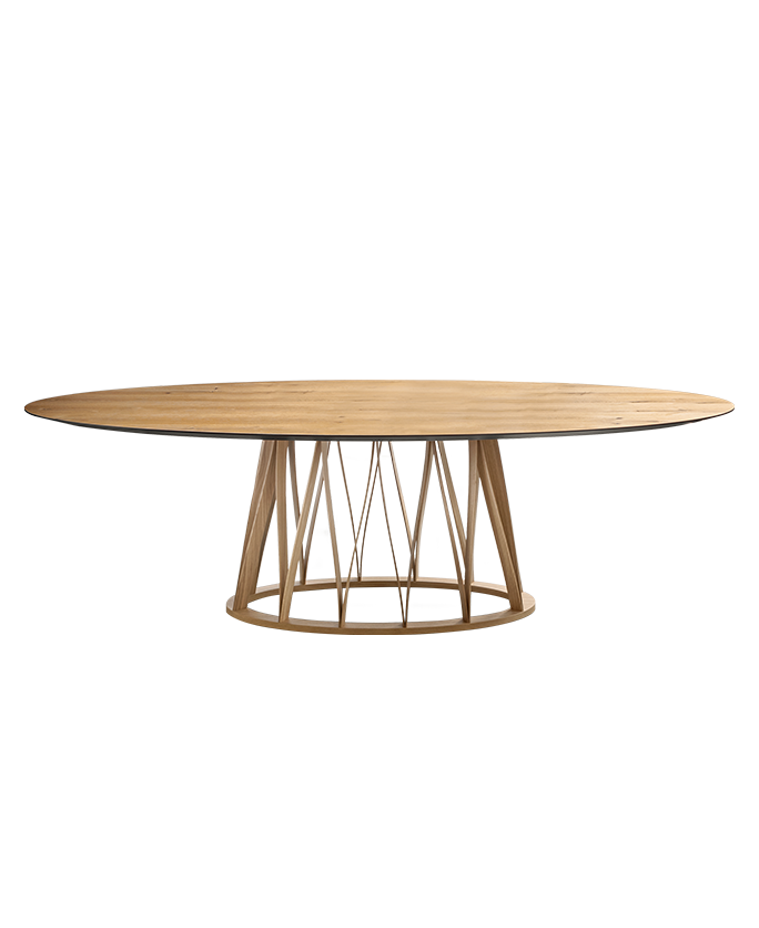 Acco is an elegant dining table with a strong character that resists labelling. It displays a mature, sophisticated language, which is developed through the design of the base frame with its distinct regular pattern of wooden lines.