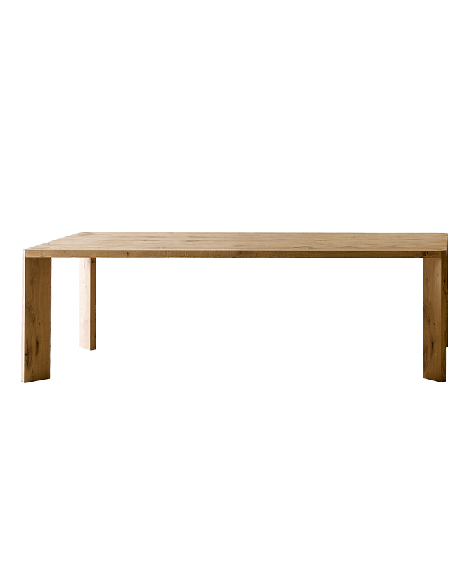 Manero is a contemporary looking table yet has a strong association with traditional fine quality joinery. Its primitive character focuses our attention on the expressive nature of the wood. An assertive table with no frills.