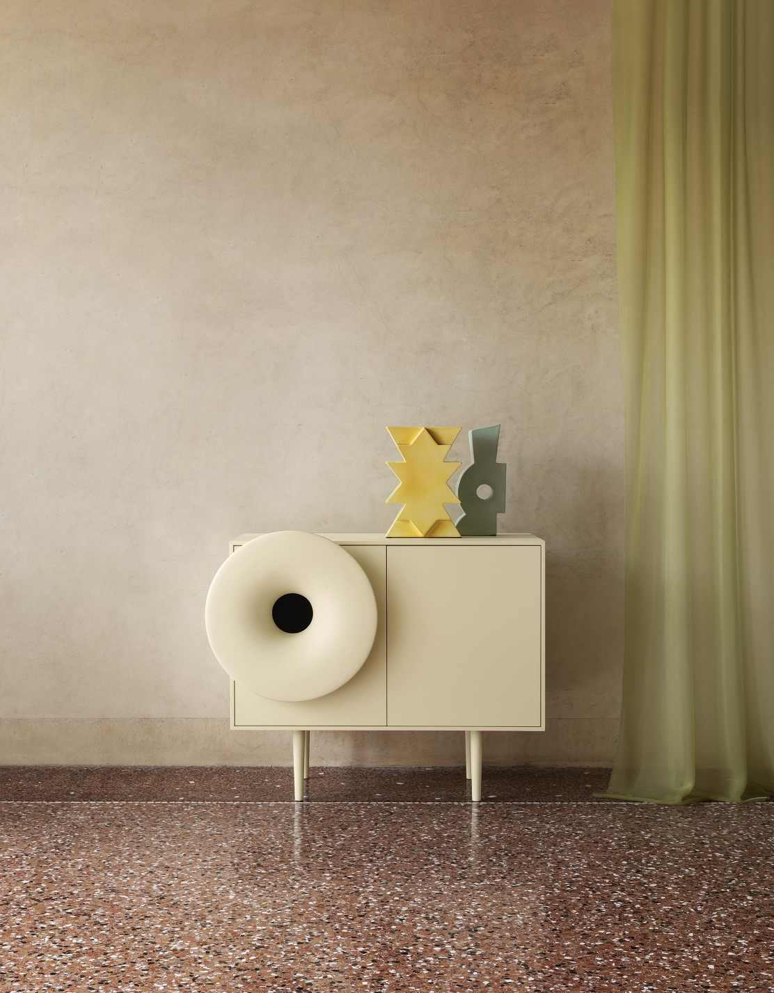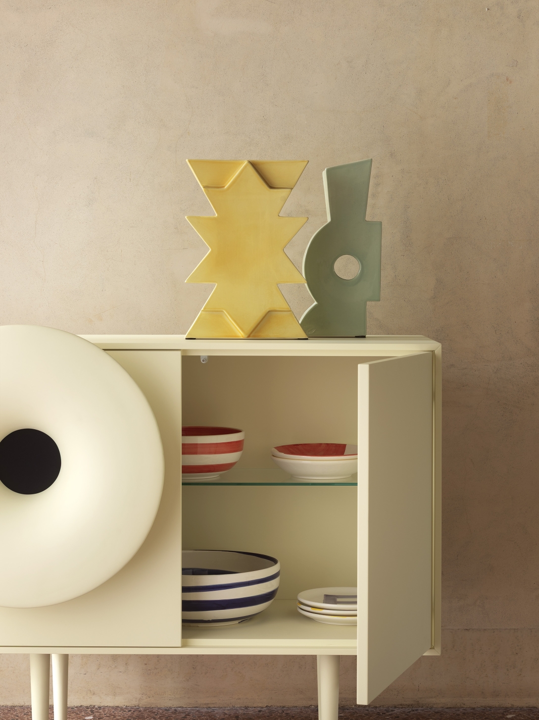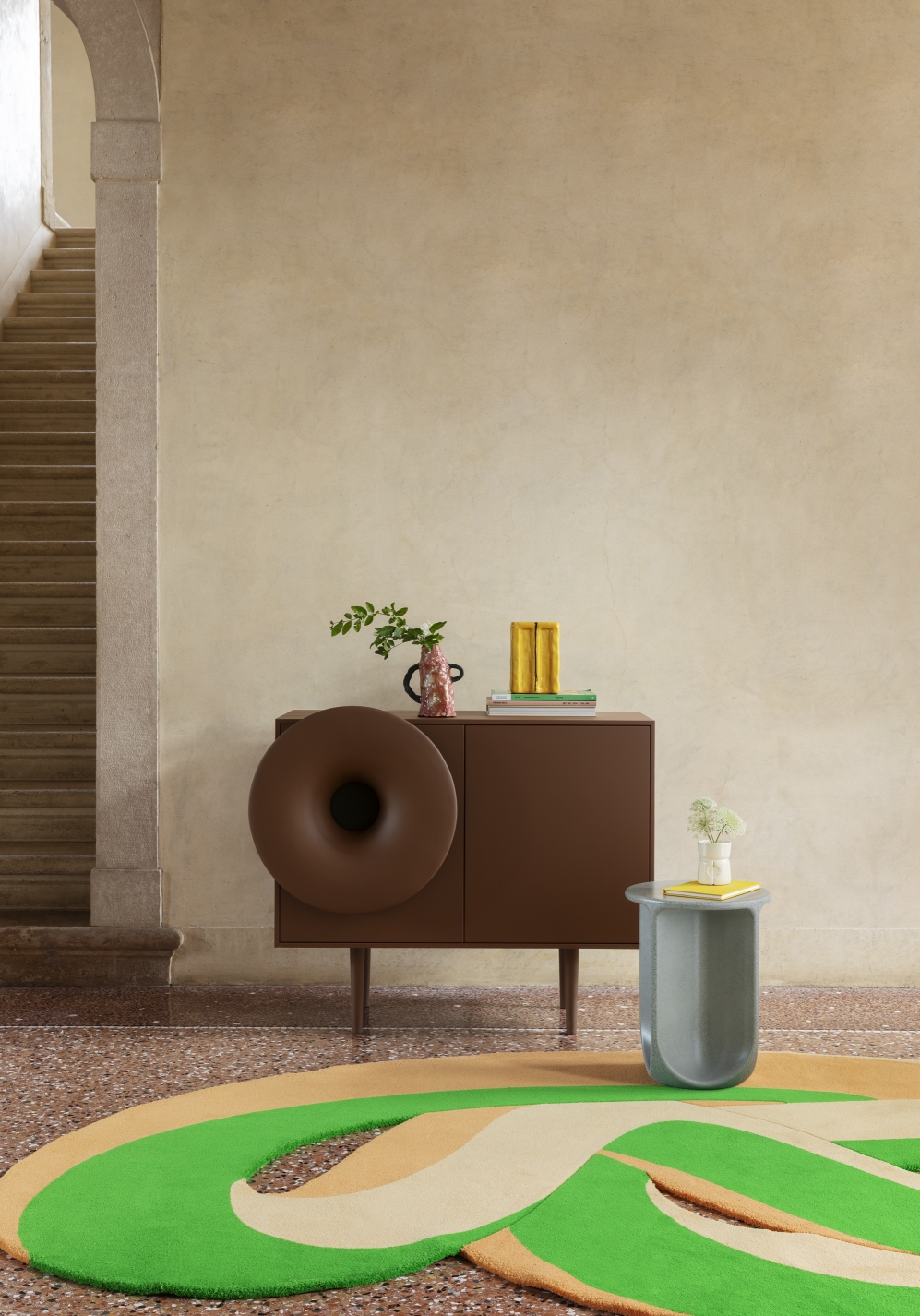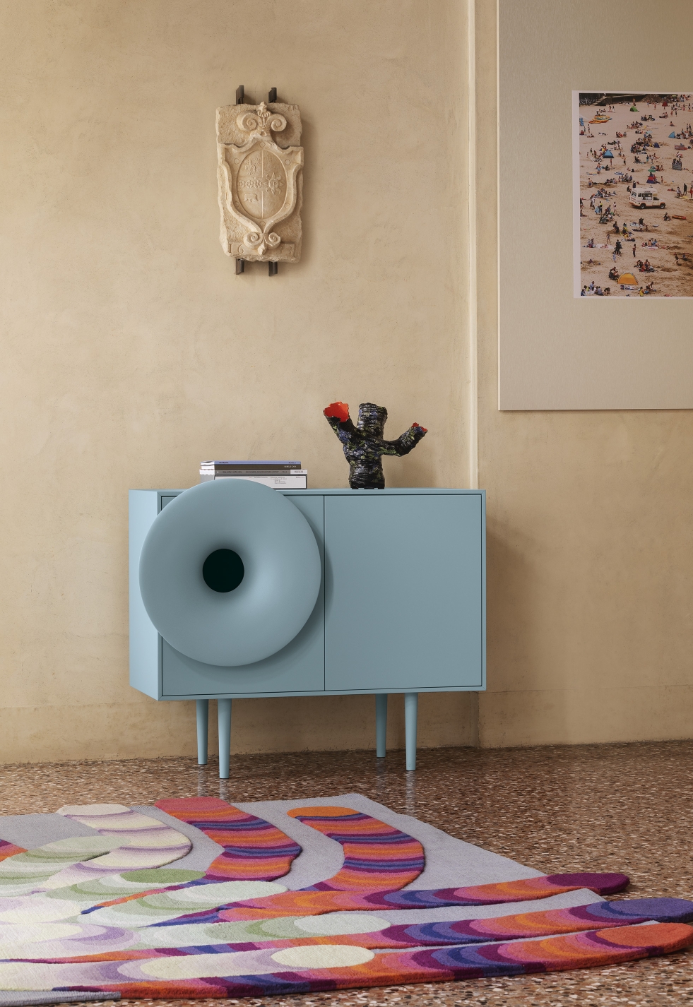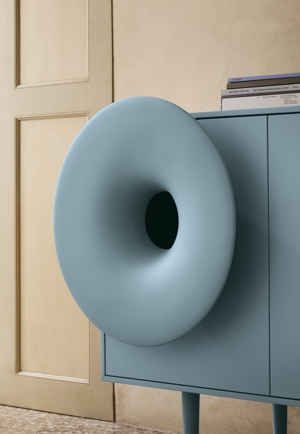 Caruso invites you to sit down, take a break, and find again the magic to hear and see an object that plays good music. It stands on the edge of irony, a little futuristic, a little nostalgic, managing to combine hi-tech to the living for a multi-sensory décor.
