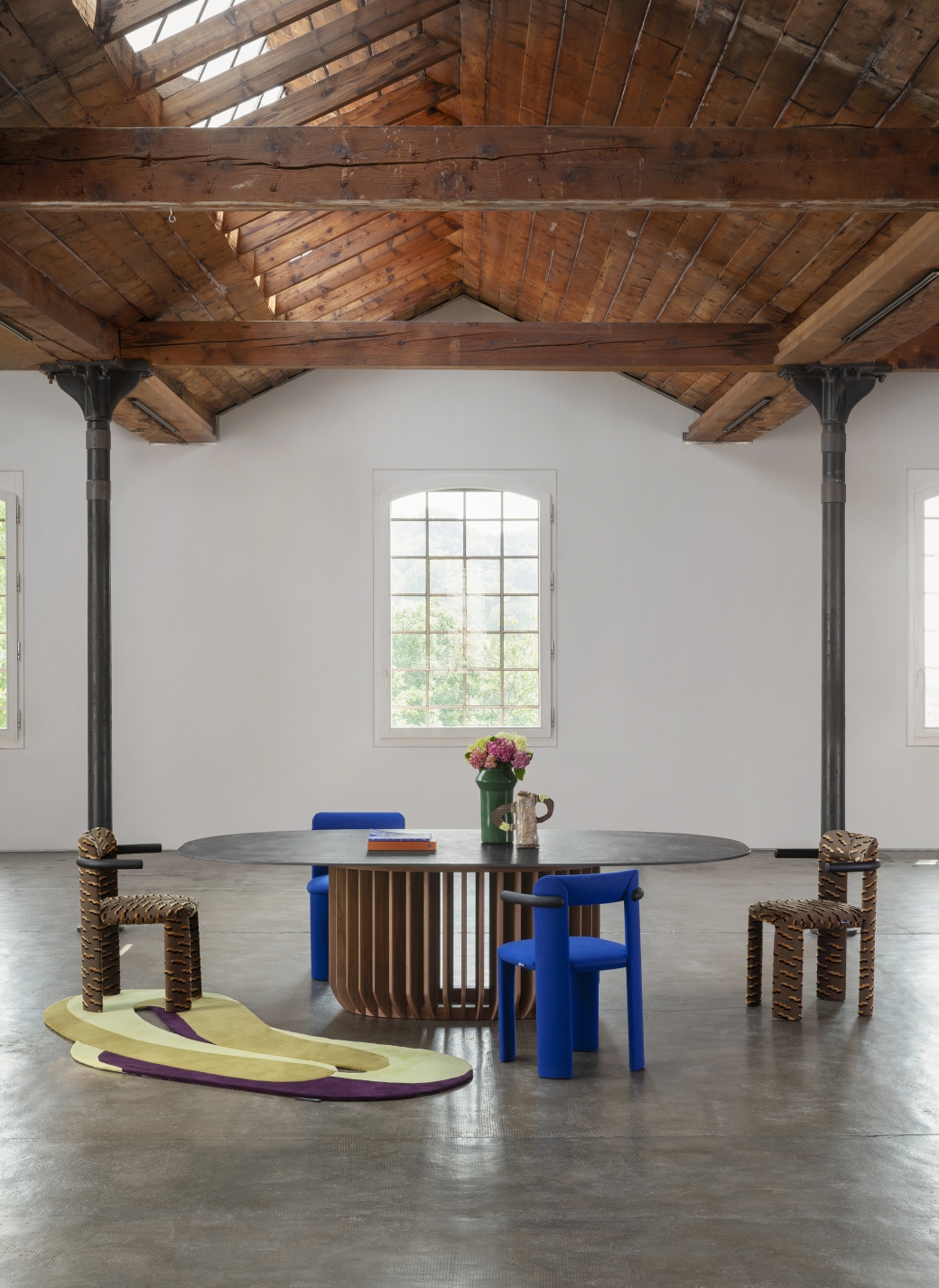 Juice es una mesa estatuaria con un sabor meditativo. Encuentra su sustancia en la base, donde largos tallos de madera sujetan el anillo inferior, envolviéndolo. Juice se convierte entonces en una mesa que se desarrolla sobre el equilibrio entre los espacios llenos y vacíos, creando una sensación de perfecta calma.