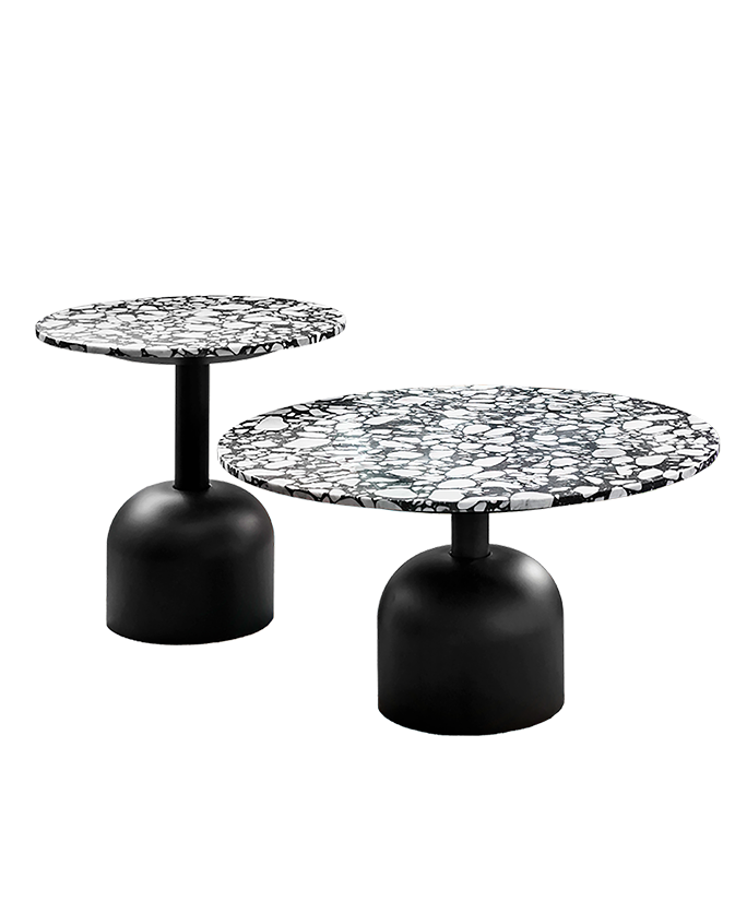 Nella versione tavolino, Illo si addolcisce sempre di più. Con volumi ridotti, si scopre la somiglianza con i pesi da palestra, ma state tranquilli, non dovrete alzarli. Sono una coppia di tavolini dall’aria spensierata e autentica che insegnano il concetto di leggerezza all’ambiente.